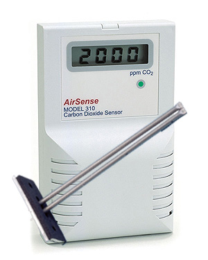 Fresh air contains 350-400 ppm CO2. Human respiration and combustion by-products from furnaces, fireplaces, and household appliances can easily raise indoor levels above 2000 ppm. With your AirSense™ Model 310e CO2 Monitor, you can watch CO2 levels rise as people enter a room.